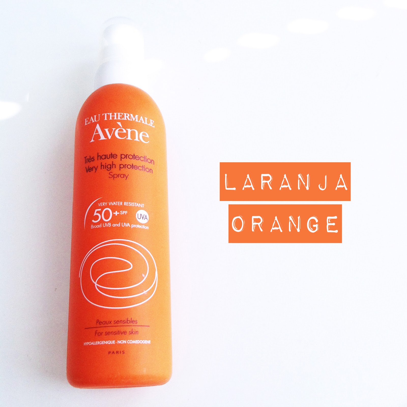 LARANJA é um dos produtos que uso muito no verão, o protector solar da Avène factor 50, e faz parte do meu kit solar. É excelente porque seca muito rápido e não deixa a pele oleosa.